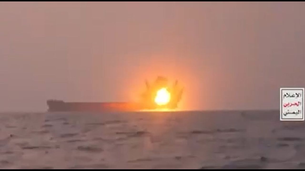 Footage of the attack of the bulk carrier “Transworld Navigator” by a Houthi maritime drone 06/23/2024. The ship was seriously damaged. Yemen