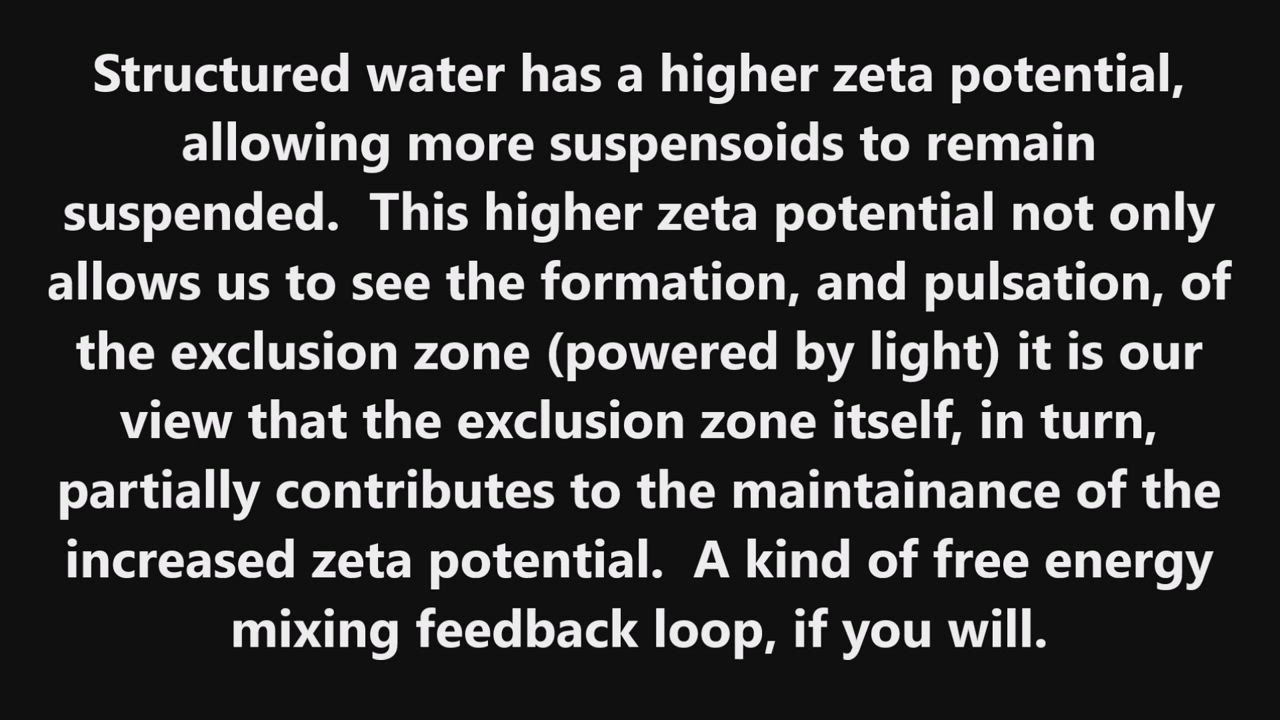 After removing both samples from direct light for 2 hours, the ‘filament’ in the structured sample disappeared completely. When both samples were placed back into direct light, the structured sample ‘grew’ a ‘filament’ in reverse from the tip of the steel wool to the bottom of the jar. The ‘filament’ meandered like a plant growing in reverse (top to bottom) and took less than 2 minutes to span the full length. I am now convinced that the structured sample forms a large exclusion zone/s and that this zone (visible to the naked eye owing to suspensoids), represents a flattening of the ‘free energy landscape’ with profound implications for biology. Could this structuring process be related to the elusive magnetic monopole theories posited by the naturalist Phillip Callahan?