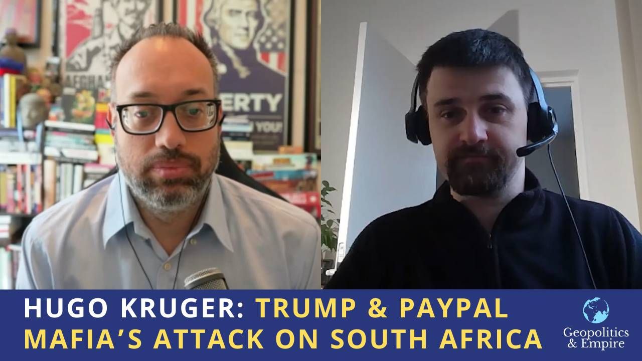 Hügo Krüger discusses Washington's attack on South Africa which also features the weaponization of South Africa's own diaspora against it, namely the PayPal Mafia (e.g. Musk, Sacks, Thiel). The contention centers around foreign policy (e.g. Israel) and land reforms. He examines the strange history of the PayPal Mafia in South Africa and provides an update on the latest in energy news.