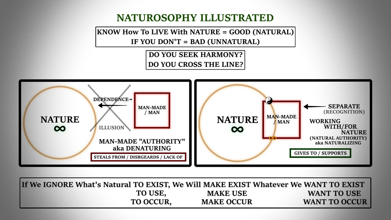 These diagrams help simplify a philosophy known as Naturosophy, which can be applied to any subject of life, with the claim that "morality is naturality", "what is natural to exist is what is natural to persist", "use your nature or lose your nature", etc. It is merely a guide to action, for harmonizing ourselves with nature and recognizing it's authority.