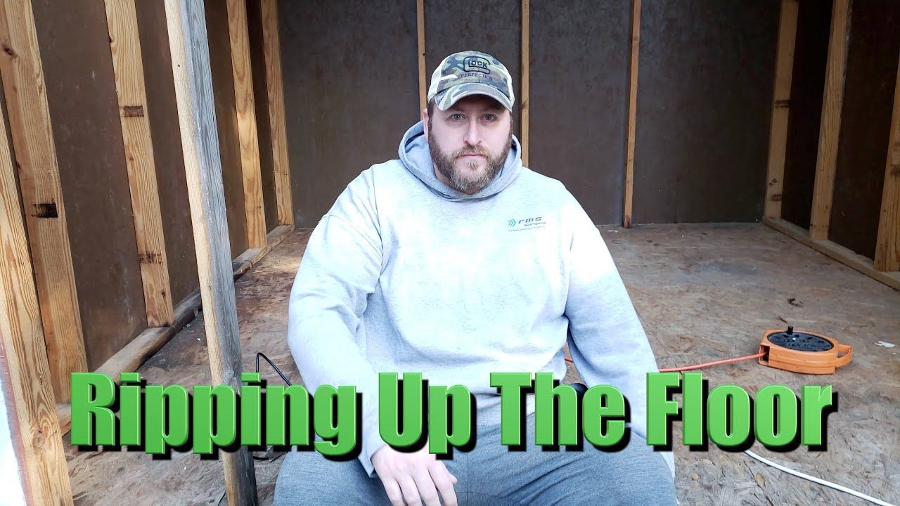 Pulling up the floor to the shed.