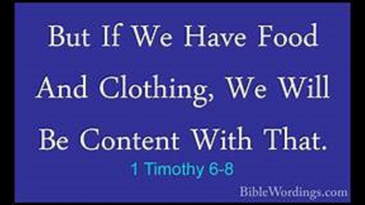 But if we have food and clothing, we will be content with that. 1 Timothy 6:8