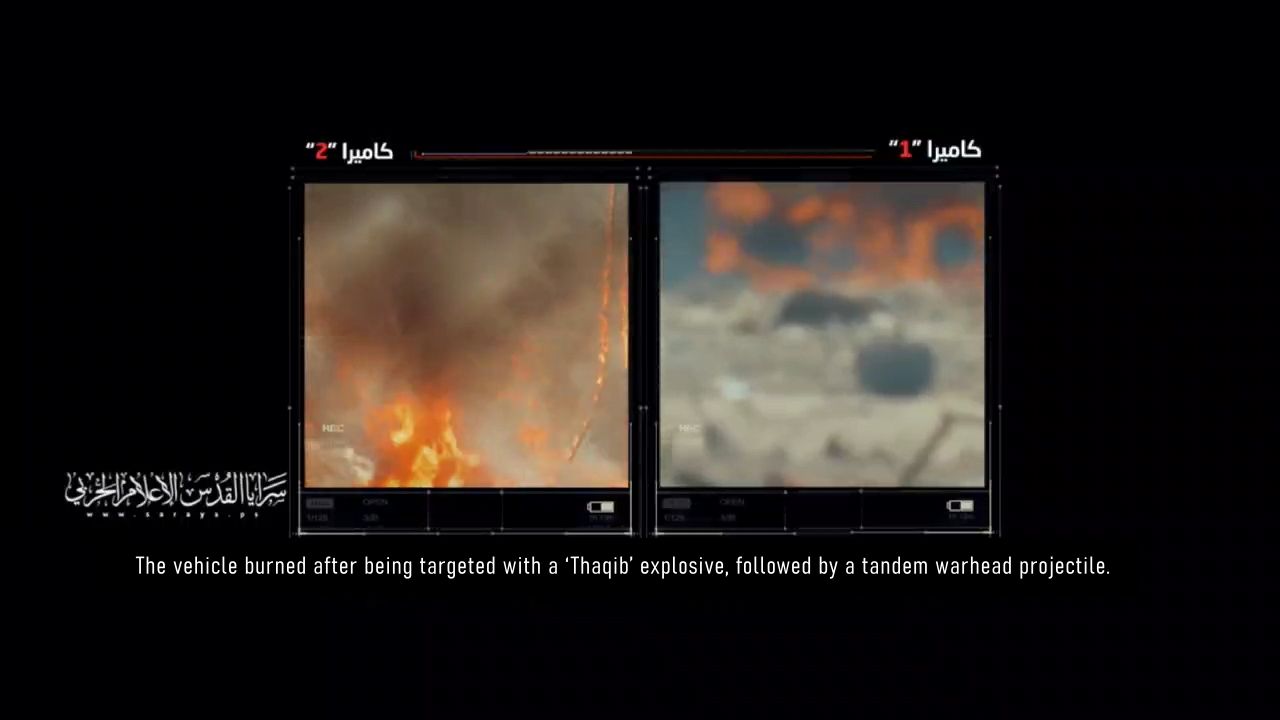 Al-Quds Brigades showcases footage of their fighters engaging with "Zionist" enemy soldiers and vehicles during their incursion into the heart of Jabalia refugee camp in northern Gaza Strip.