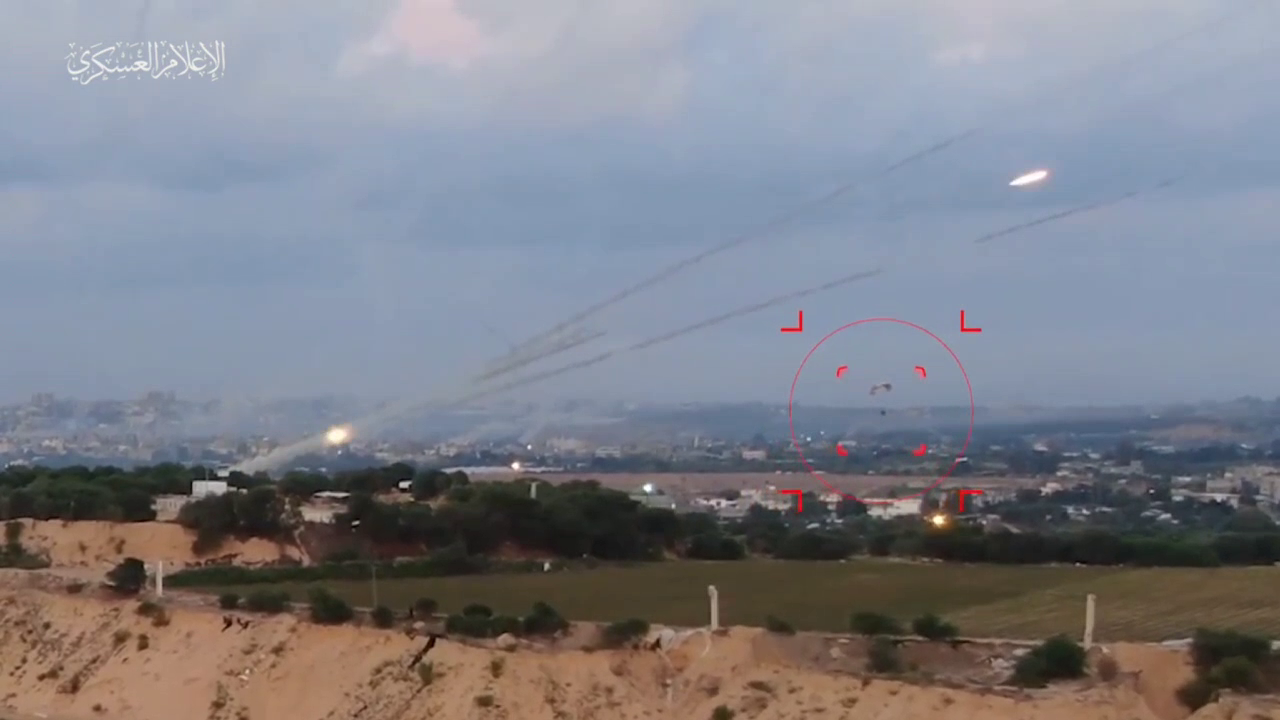 A Palestinian calmly flying a paraglider below the salvo of a working MLRS is just a propaganda gift for the entire Arab world.