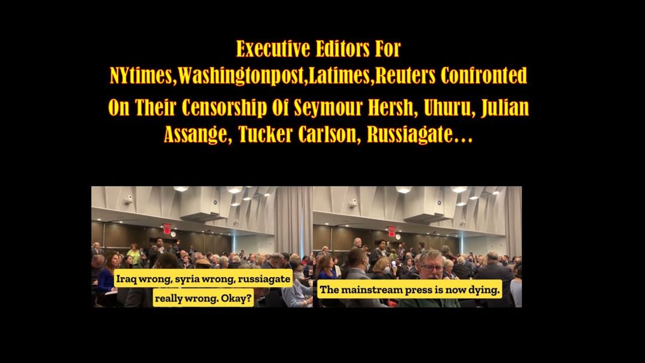 My friends and I confronted the executive editors for @nytimes, @washingtonpost, @latimes,@Reuters on their censorship of Seymour Hersh, Uhuru, Julian Assange, Tucker Carlson, Russiagate..Then the Dean of Columbia and security pushed me to the ground and tried to silence me.