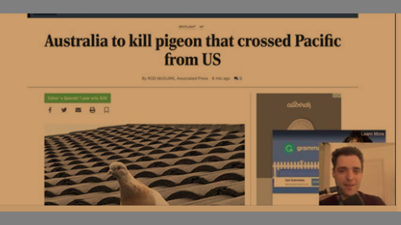 Australia announces it will kill a pigeon that travelled 8,000 miles across the Pacific (because COVID!), reinforcing that animals and humans can no longer be allowed to travel freely in the "New Normal." Hungary is set to cull 101,000 hens, eliminating a chunk of their egg production, after an outbreak of bird flu, just like Lithuania, Russia, UK, France, Germany, Japan... the mass culls are everywhere, and also throw a wrench into the gears of meat import/export market. Christian covers the latest developments in the "animals are dirty and dangerous" narrative that is part of the war on animal agriculture and Agenda 2030.