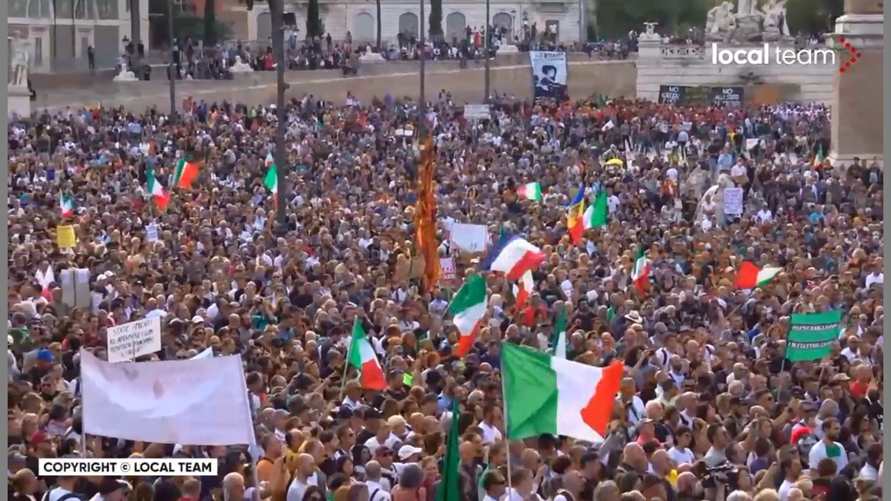 Oct9rd Italy Rome No Green Pass Covid19 Vaccine Passports Protest Demonstration Lockdowns Quarantine