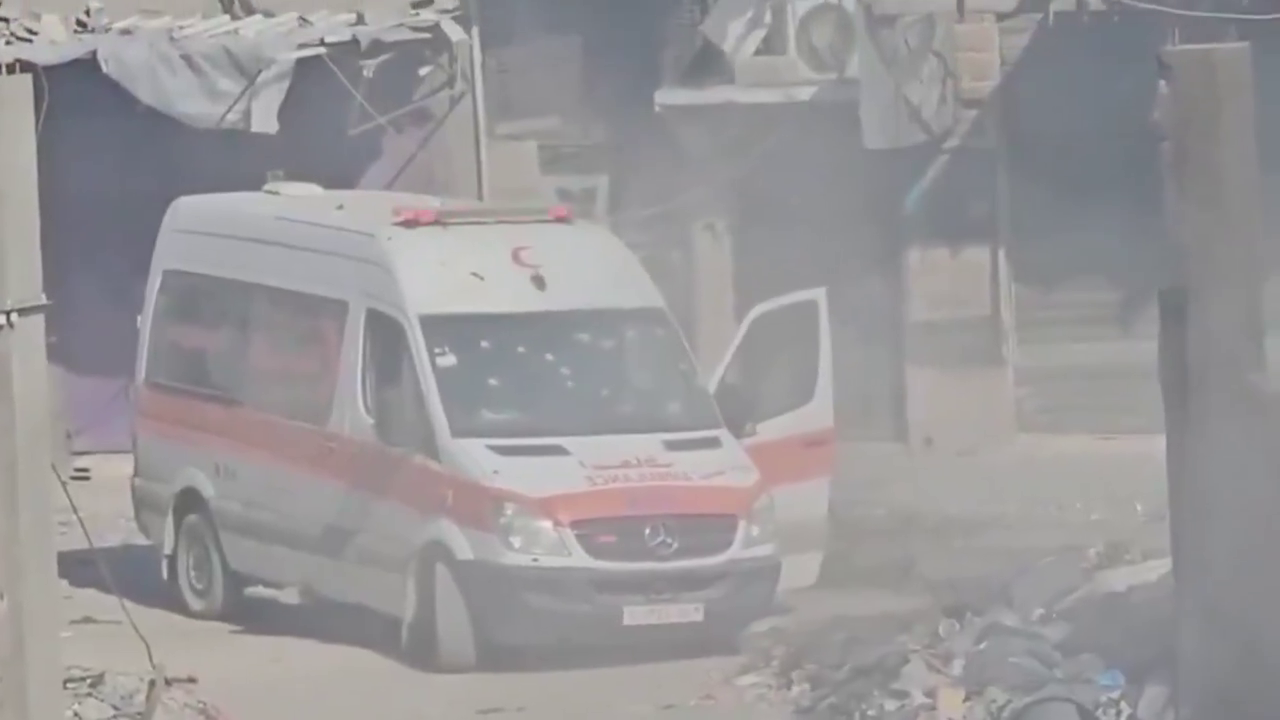 Israeli soldiers deliberately opening fire on an ambulance outside Kamal Adwan Hospital in Beit Lahia, northern Gaza.