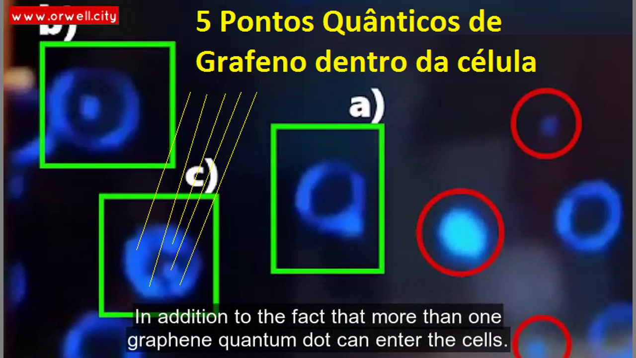 Uma vez dentro do corpo, o óxido de grafeno passa por uma série de processos que lhe permitem, eventualmente, entre muitas outras coisas, sob a forma de pontos quânticos, quebrar as barreiras celulares e quebrar o ADN. Dadas as característica radio-moduláveis do grafeno o impacto dos campos electromagnéticos aumenta muito a sua toxicidade. O pico de 900 MHz é o mais potenciador do suicídio celular (apoptose). As antenas que começaram a ser colocadas desde o início da "pandemia" nos candeeiros públicos e mobiliário urbano operam a 900 MHz e 1800 MHz. Ver estudo: https://www.brighteon.com/92627e34-91c2-432d-b233-6b9a58f164db