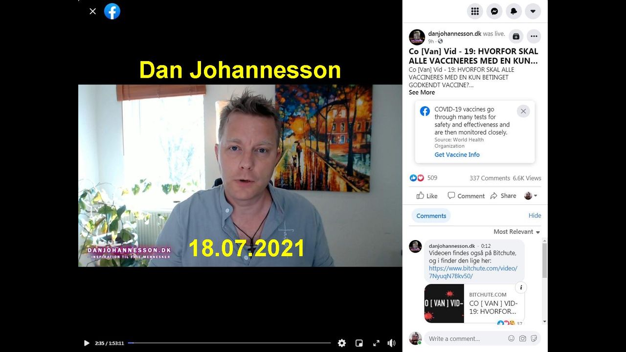 Dan Johannesson was live 9h ago. Co[Van]Vid-19 [18.07.2021]