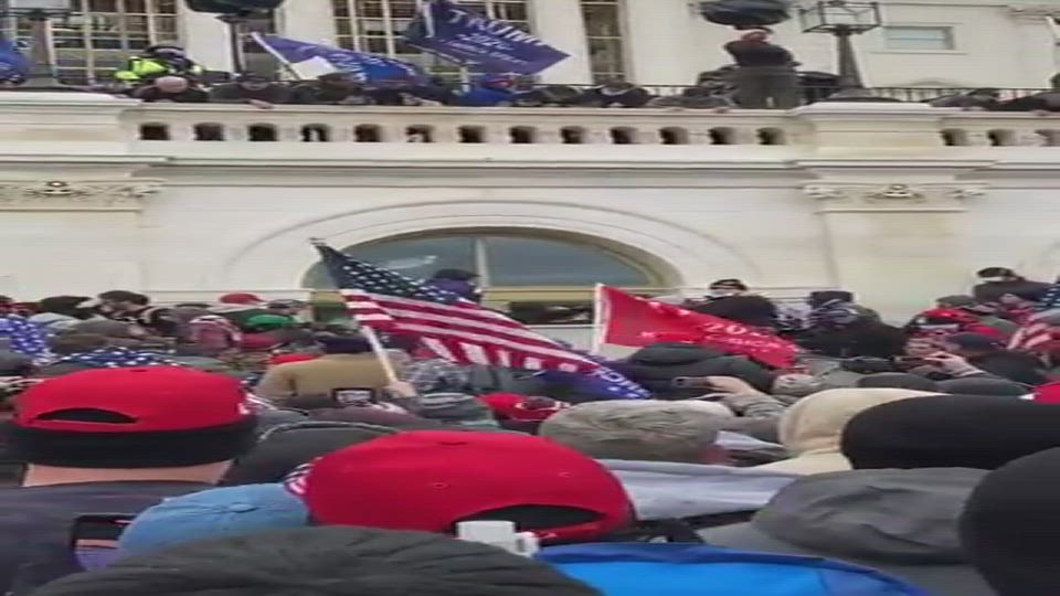 Trump supporters at US Capitol tell Antifa to stop breaking windows.