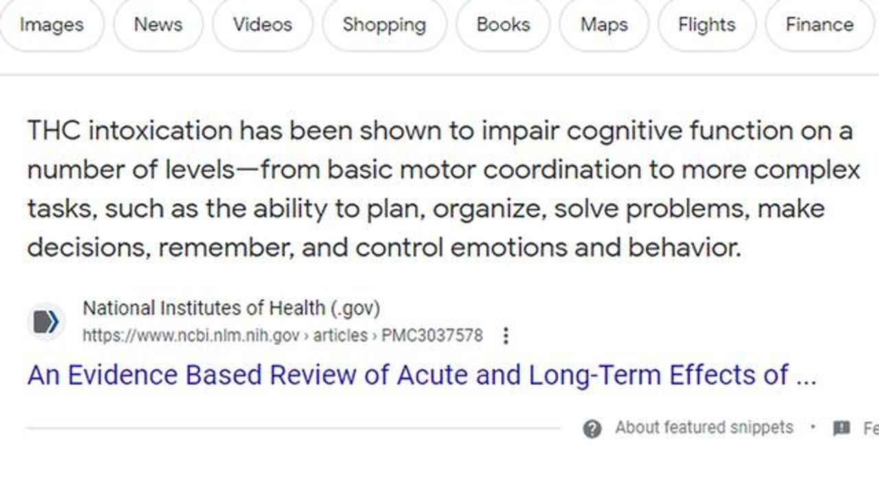 Delta 9-tetrahydrocannabinol (THC) is the primary psychoactive constituent of the cannabis sativa plant and is believed to be primarily responsible for the cognitive effects and the addictive potential of smoked cannabis. THC intoxication has been shown to impair cognitive function on a number of levels—from basic motor coordination to more complex tasks, such as the ability to plan, organize, solve problems, make decisions, remember, and control emotions and behavior.