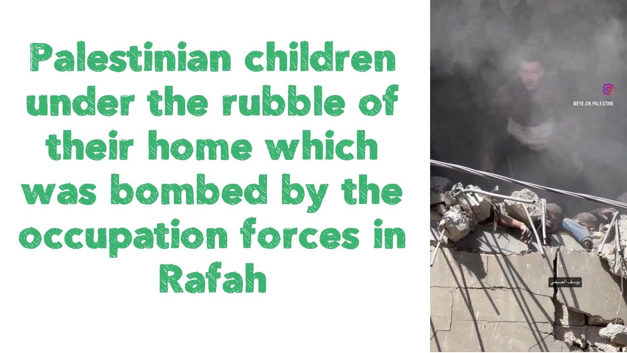 Palestinian children under the rubble of their home which was bombed by the occupation forces in Rafah..