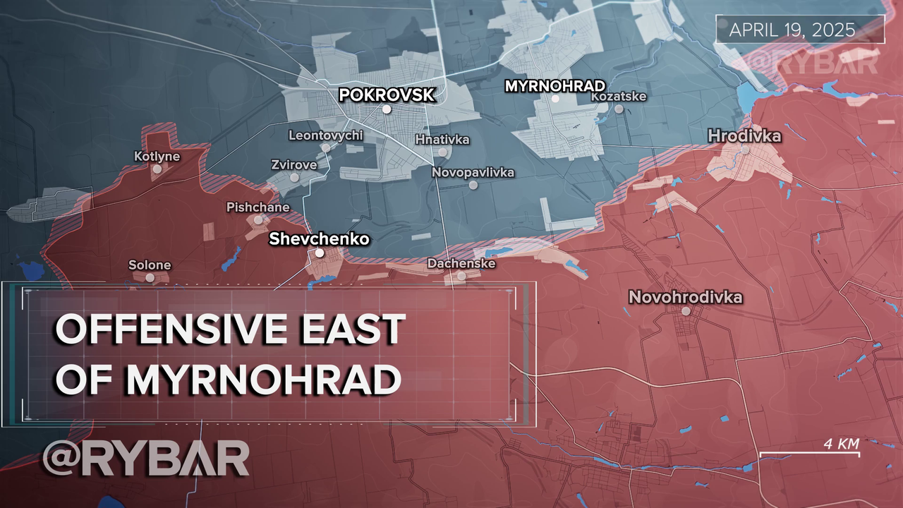 ▪️ By May 4, on the eastern flank, Russian assault groups had crossed the H-32 and engaged in combat on the eastern outskirts of Malynivka. To the west, Russian units advancing along the shore of the Miroliubivske Reservoir entered the central part of the namesake village.