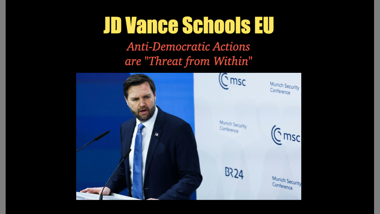 Feb. 16, 2025 - JD Vance set the world straight on Friday when he addressed EU bureaucrats at the Security Conference in Munich. The “commissars,” as he labeled them, pretend to promote democracy, but their anti-freedom policies betray their people. Let’s take a look at the speech and the reaction—plus next steps with Ukraine, Israel.