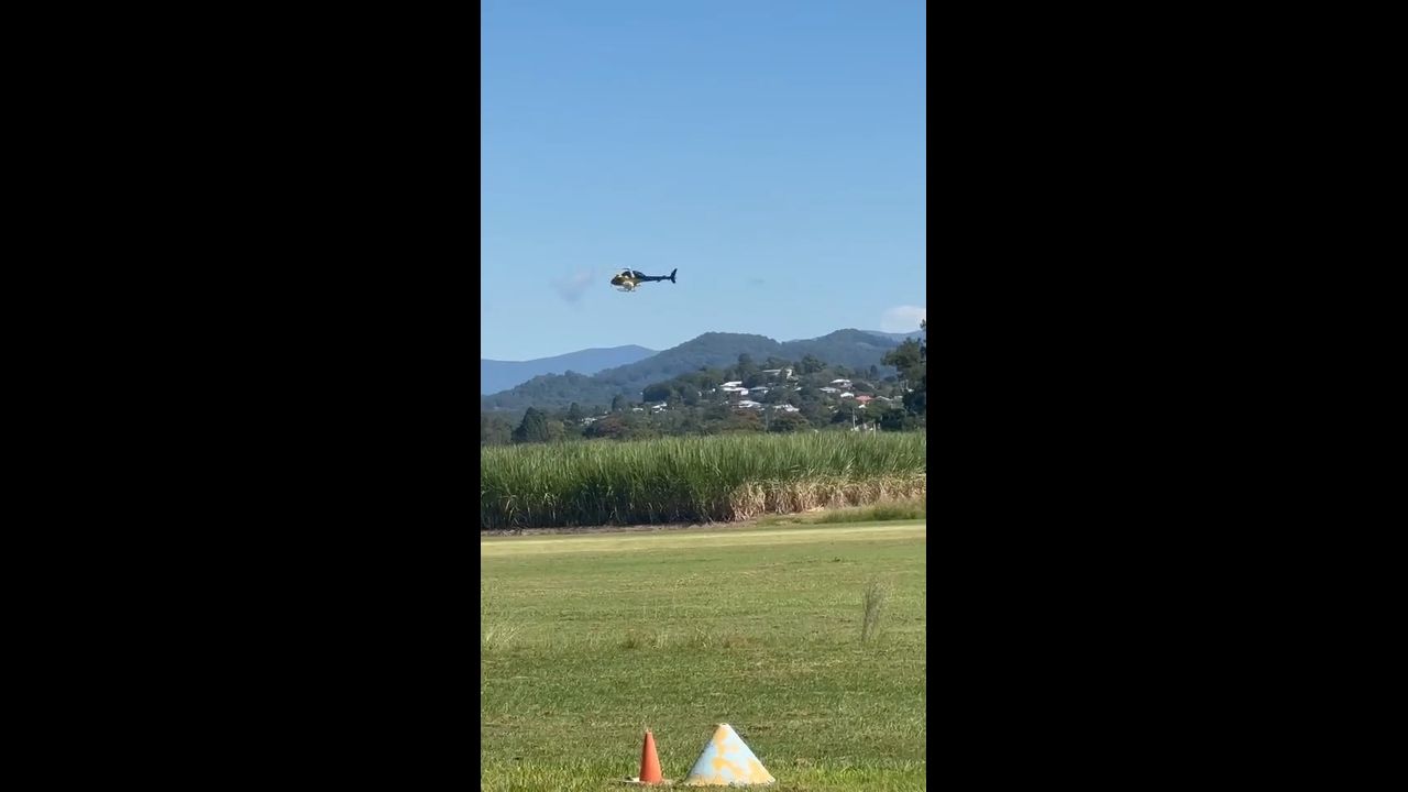 Chopper at Murwillumbah, NSW spraying deadly fire ant poison near the Tweed River and local sugarcane fields in April 2022.
