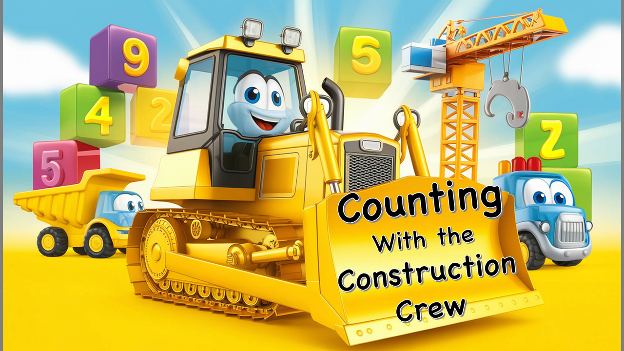 Get ready for a fun and exciting adventure in Counting with the Construction Crew, a lively children's computer animation featuring a catchy song! Designed in the playful, colorful style of Disney Pixar, this engaging video follows a friendly crew of heavy equipment—like a cheerful bulldozer, a helpful crane, and a lovable dump truck—as they show how numbers can build the world around us.