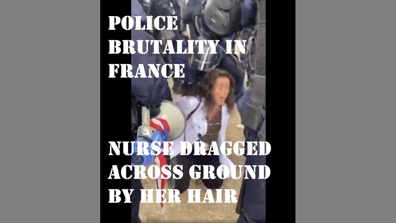 Police brutality in France - Nurse protesting against collapse of health service dragged across ground by her hair, slammed into tree and into ground, then KNELT ON as she pleads she's a nurse and needs her inhaler...