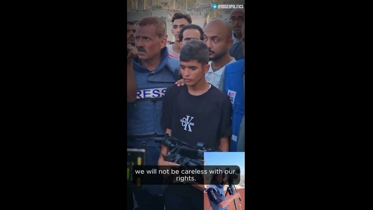 Ahmed, the son of martyred journalist Hossam al-Masri, was handed his father’s camera, retrieved from the rubble of the Nasser Medical Complex in Khan Younis, where Hossam was killed in an Israeli airstrike today. (video posted)