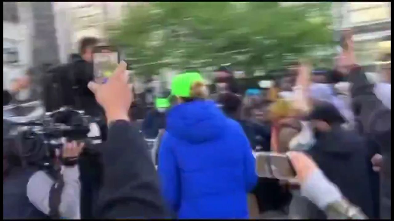 "CUNY students and faculty standing together to push the police back. When the people have the numbers the people win!!!"