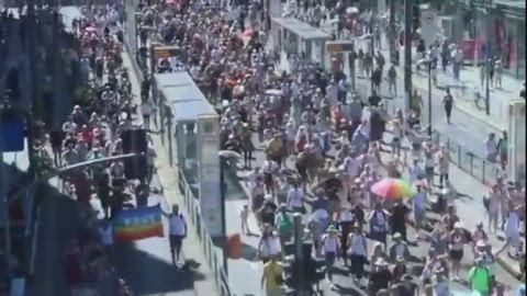 Amount of protesters filmed from bridge Germany Berlin 1st of August 2020