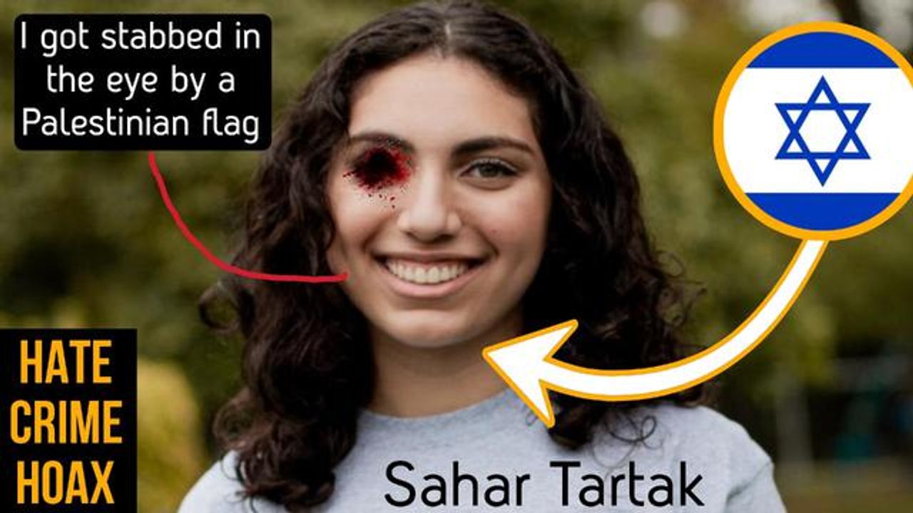 "Come on we gotta give them something, we gotta be the victims again, oh I know, let's tell the Goyim that......a random Jewish student.....got stabbed in the eye by a Palestinian flag, OY VEY yeah that's it"