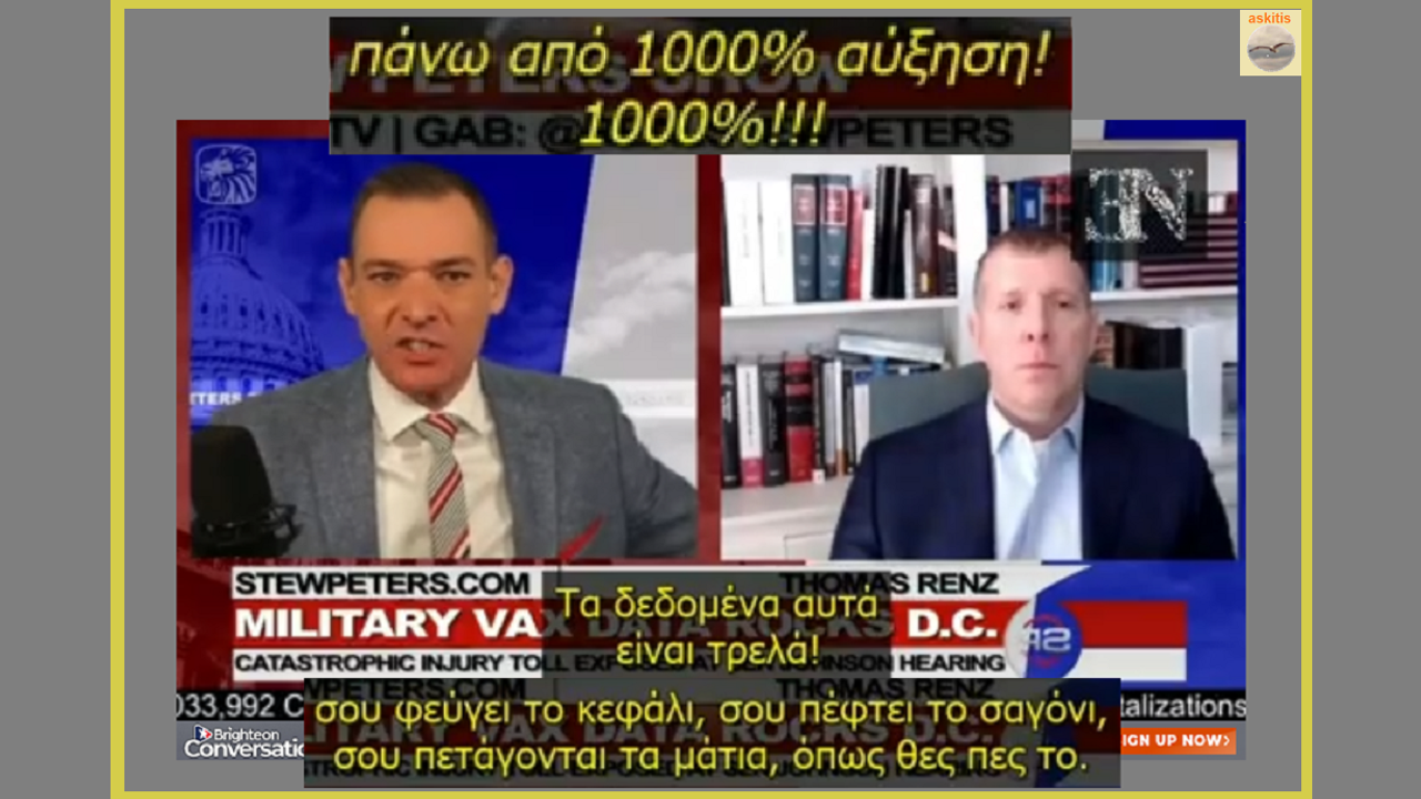 "...Είναι αριθμοί που σου φεύγει το κεφάλι και προέρχονται από αξιόπιστες πηγές.... Αρμόδιους γιατρούς, στρατιωτικούς αξιωματούχους, αξιωματούχους του Υπουργείου Άμυνας που πετούν βόμβες μπροστά σε όλο τον κόσμο, ότι οι ενέσεις αυτές τραυματίζουν και σκοτώνουν...."