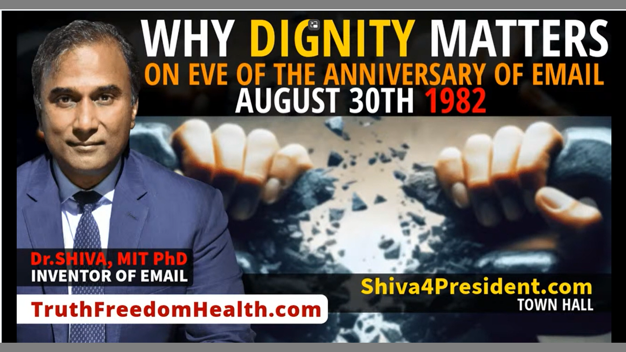 In this discussion, Dr.SHIVA Ayyadurai, MIT PhD, Inventor of Email, Scientist, Engineer and Candidate for President, celebrates the eve of the anniversary of Email on why dignity matters on all levels personal. Full Blog Post: https://vashiva.com/dr-shiva-live-why-dignity-matters-on-eve-of-the-anniversary-of-email