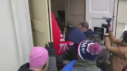 Polis släpper in demonstranter till parlamentsbyggnaden på Capitol Hill, 6 januari 2021.
