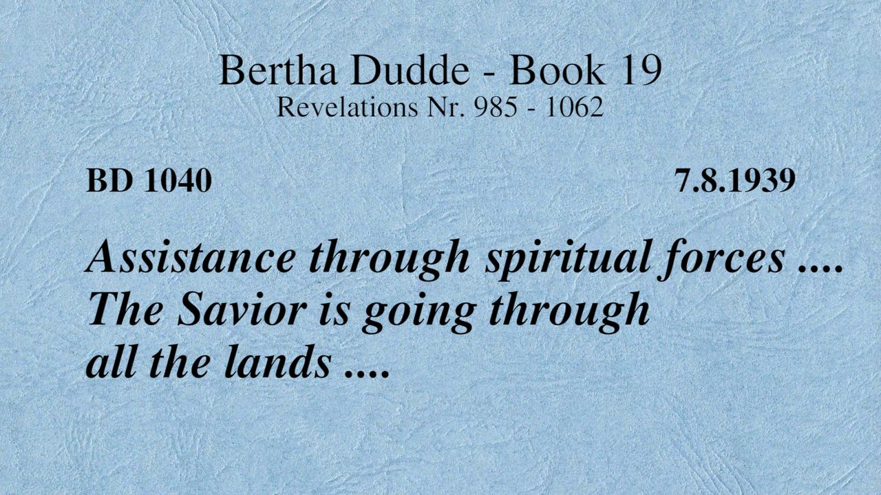 BD 1040 - ASSISTANCE THROUGH SPIRITUAL FORCES .... THE SAVIOR IS GOING THROUGH ALL THE LANDS ....
