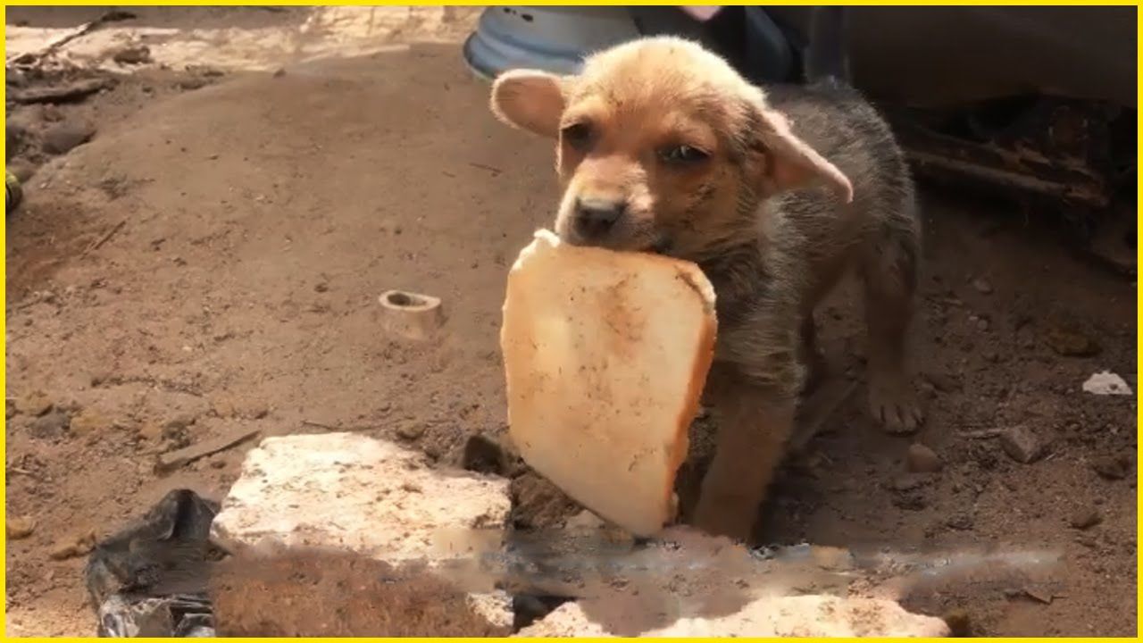 Tiny Street Puppy Shared a Piece of Bread with His Rescuers to Ask for Help