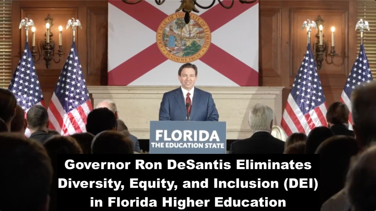 Governor DeSantis signs legislation to eliminate Diversity, Equity, and Inclusion (DEI) in higher education institutions in Florida.