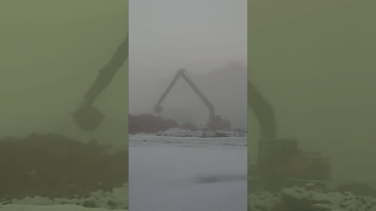 Excavator in the fog.