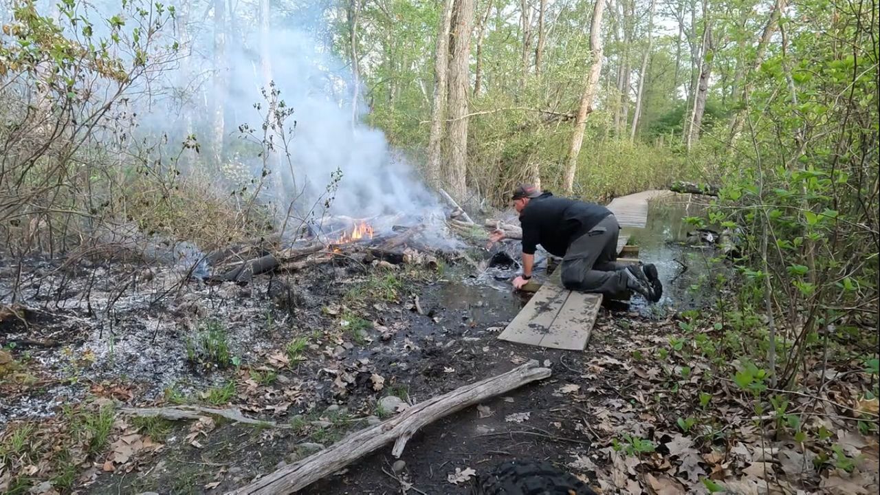 While riding my mountain Bike in Lynn Woods I discovered it was on fire and spreading, When I came to my First manmade bridge crossing I had to stop and figure out a way to keep the bridge from burning. So I used my bare hands. AND IT WORKED.