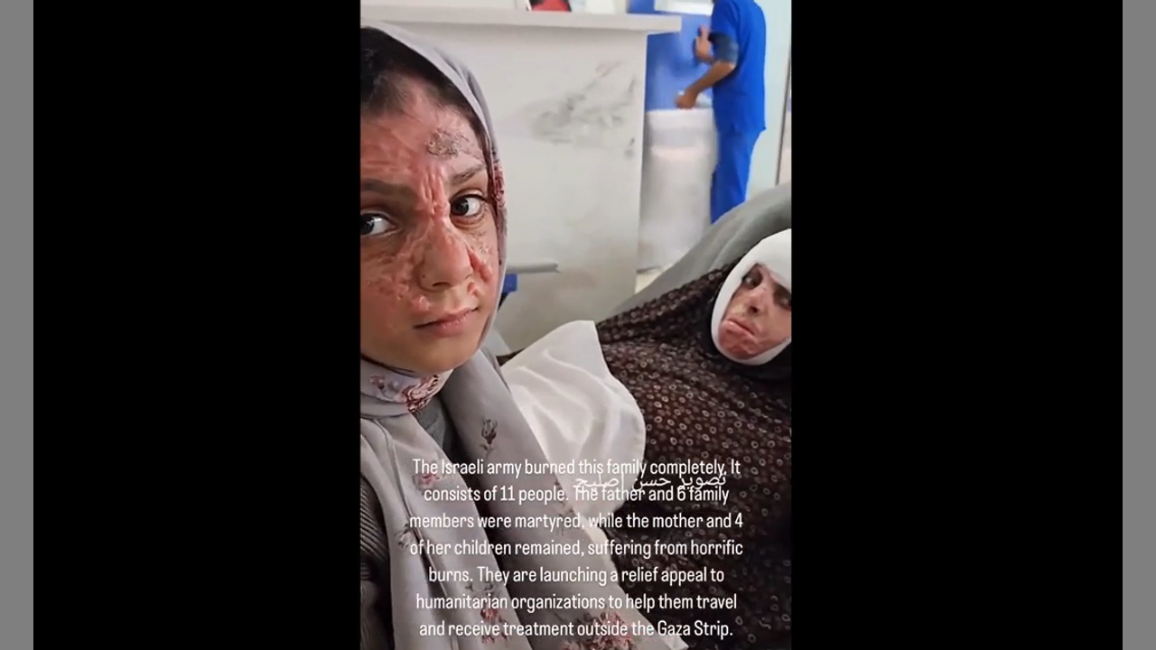 The Israeli army burned this family completely, It consists of 11 people. The father and 6 family members were martyred, while the mother and 4 of her children remained, suffering from horrific burns. They are launching a relief appeal to humanitarian organizations to help them travel and receive treatment outside the Gaza Strip.
