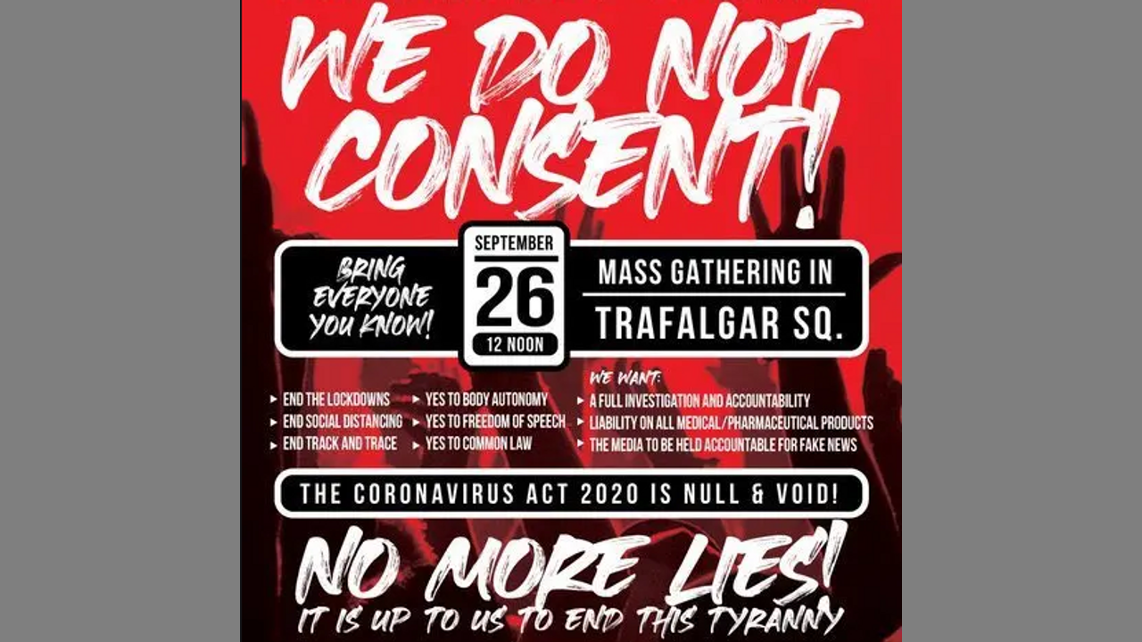 London Freedom Protest Trafalgar Square 26th September 2020