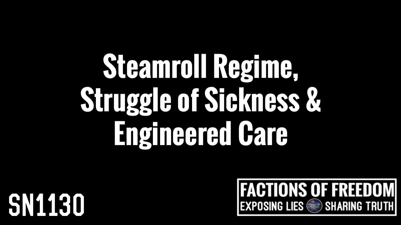 Episode Article: https://factionsoffreedom.jimdofree.com/2021/10/08/sn1130-steamroll-regime-struggle-of-sickness-engineered-care/