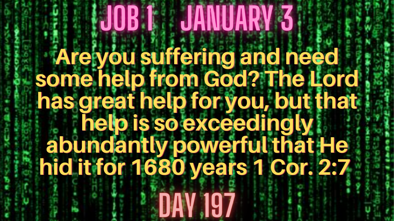 Are you suffering and need some help from God? The Lord has great help for you, but that help is so exceedingly abundantly powerful that He hid it for 1680 years 1 Cor. 2:7 because His plans were to only offer that help for 1,000 years in the Kingdom of Heaven. But the second age of the Kingdom is at hand and we now have it in part 1 Cor. 13:9-12 and I can assure you that He is anxious for you to begin to avail yourself of His help which will be fully available for the righteous dead and the righteous living in about 40 years Micah 7:15!