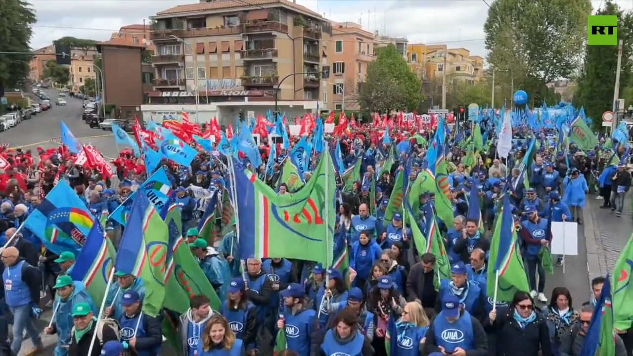 Thousands rally in Rome for better working conditions: A massive labor union rally takes place in the Italian capital, demanding a pay rise and better working conditions.