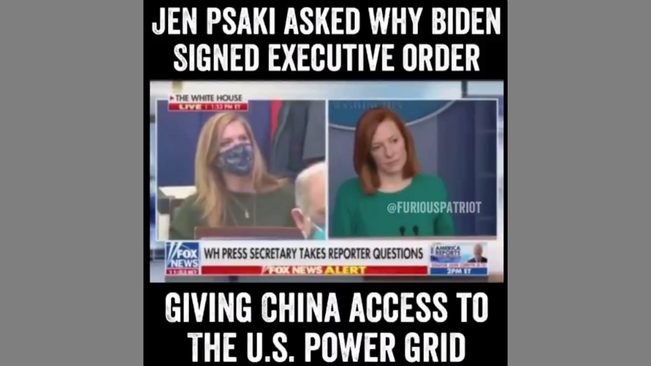 Last week Biden suspends Trump’s EO barring foreign nations from interfering with US power Grid (specifically China) for 90 days without explanation.