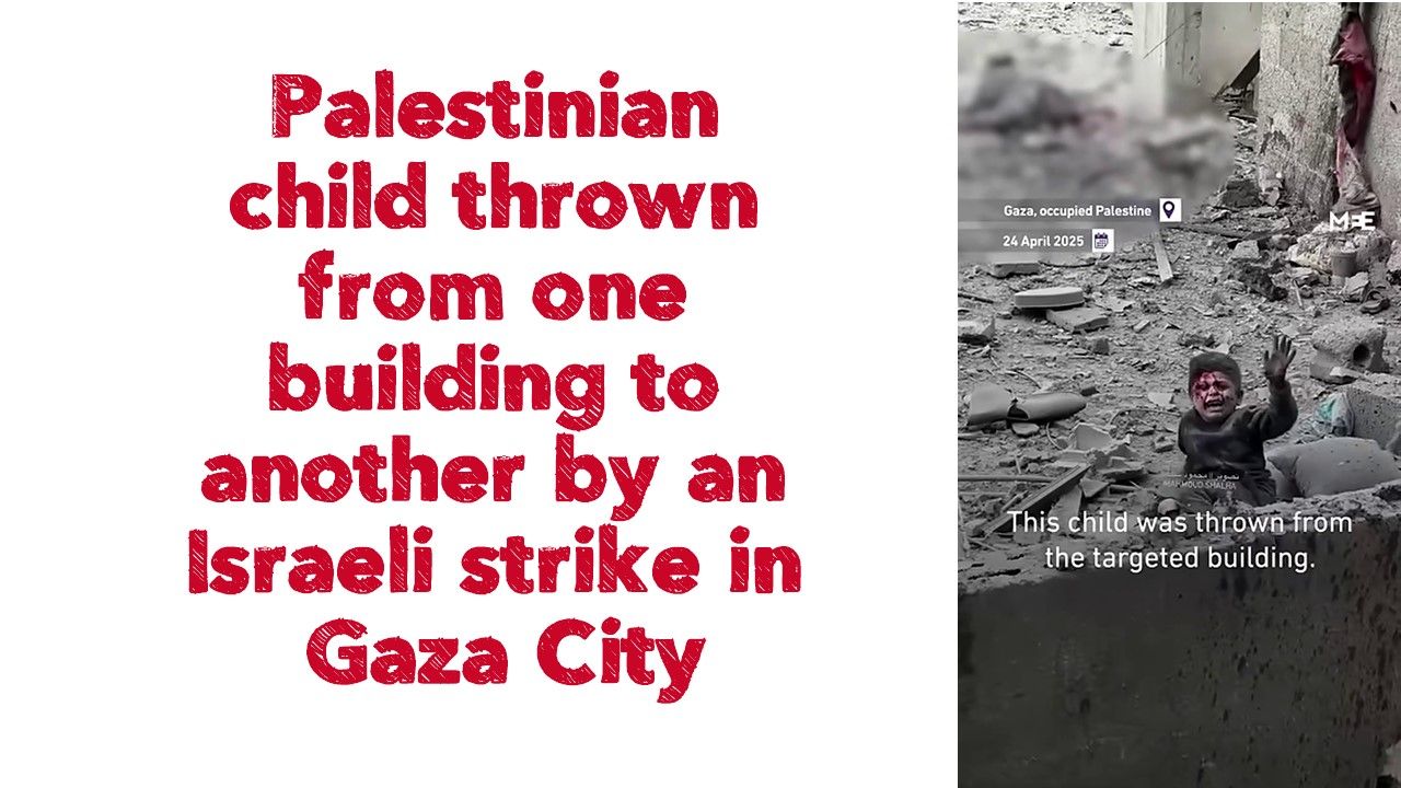 Palestinian child thrown from one building to another by an israeli strike in Gaza City 04/24