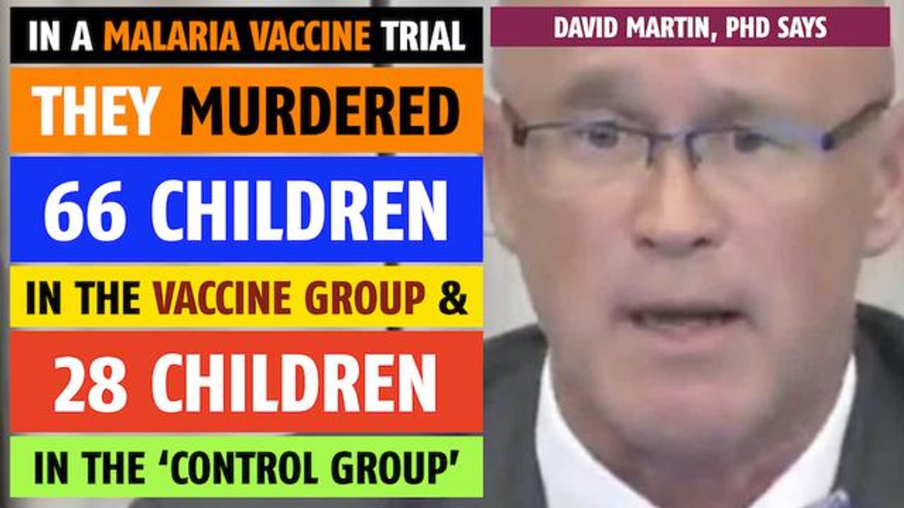“Their worldwide program for a Malaria vaccine for children under… 6 months of age. “[In their clinical trial…] they murdered 66 children in the vaccine group, and [ they murdered 28 children in the ‘control group’ ].” “This is the 2011 data [from] the World Health Organization, the Wellcome Trust, PATH, and The Gates Foundation did.” “The control group [did NOT] get a saline injection.” “It was a cocktail of other known pathogenic disease- carrying [pathogens].” “The ‘control’ [injection] was known to kill people, and they experimental [vaccine] group was, theoretically, maybe going to kill people, and… [they]… went ahead and murdered them all.” David Martin, PhD speaking on Sep 13, 2023 at the European Parliament in Strasbourg, France.
