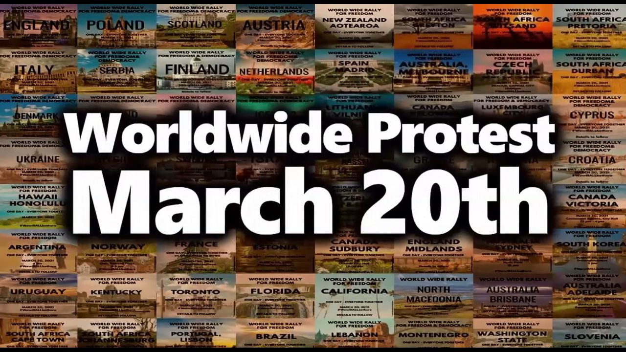 March 20th Worldwide Demonstration Rally for Freedom Covid-19 Coronavirus Protest Lockdowns Masks