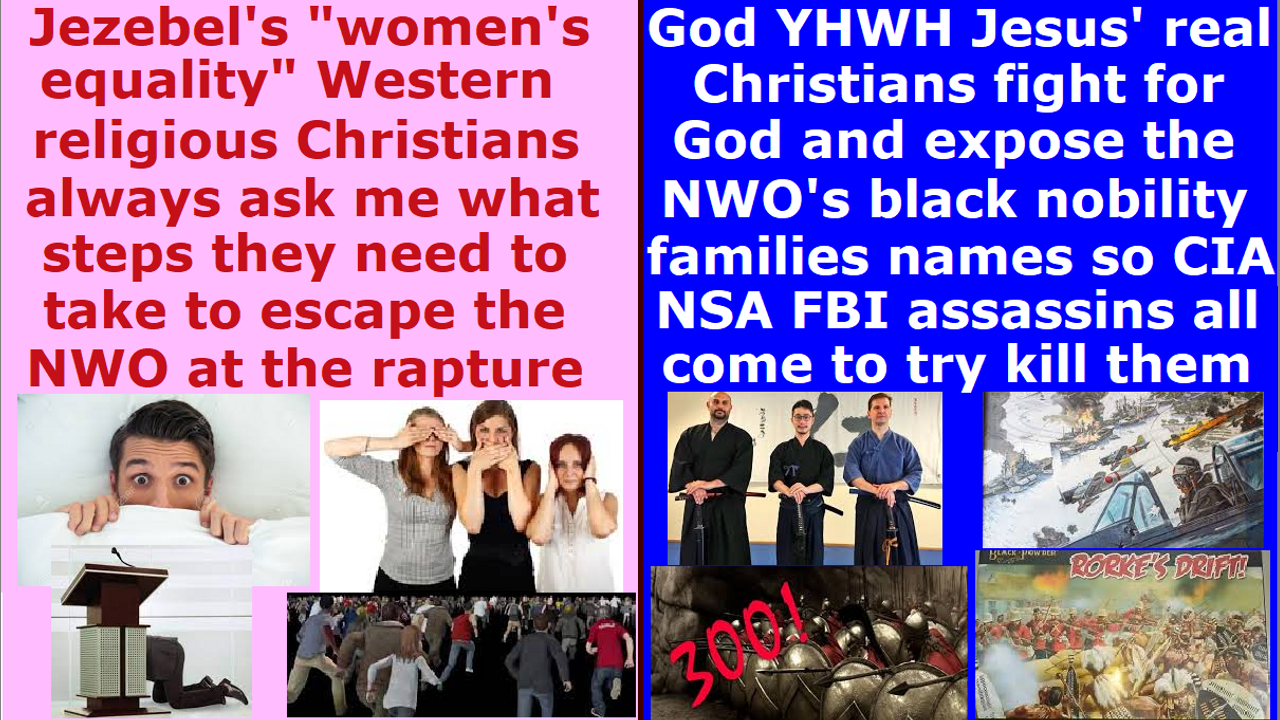 Religious Christians are always looking for an easy way of escape to have both the world and God. They do not want to give up the world, and they only want God’s salvation, but not God. This is why they come to us real Christians to ask questions like, “Let me know the steps I need to take in order to be raptured and get away from the NWO.” You already know immediately that something is not right with their heads. A normal real Christian would come to not ask you but rather ask God, “What can I do to serve you and commit myself to you and love others?” These religious Christians only come to our real Christians’ website to read the amusing and interesting parts to find out the real truth, but they ignore all the important critical vital parts about what they have to do to follow Christ. They do not want that part. They do not like my answer to them saying, “Love God with all of your heart and soul and mind and strength, and love your neighbor. Speak forth 100% of the truth, so that everyone will come to try to kill you and slaughter your family. Expose the darkness, and defend the human specie and the earth and the brethren and our allies and the resistance and restrain the spirit of the AntiChrist, so that everyone will leave you thinking that you are a lunatic heretic idiotic narcotic maniac like Jesus. Restore all the original Bible verses that the pastors redefined in order to get church donators and church members, so that all the female donators will leave your church in anger and disgust and will form a riot mob to try to stone you. Sell all your emergency gold and emergency food and health insurance and Katy Perry concert tickets and investments, and give that money to the poor, and pick up the cross and follow Christ. Expose the Draco reptilian chimera alien incarnate avatar earth rulers black nobility families’ names, and the hidden earth matriarchal rulers Draco Pleiadian hybrid witch pedophile cannibal feminist Satanist CIA NSA MI6 FBI CPS global child trafficking rings adrenochrome blood drinking mass genocide assassin group’s names, to mobilize God’s spiritual prayer army, and defend the earth & humans & women & children, and glorify our Almighty Holy Righteous Loving Creator God YHWH Jesus.” Then, they will stop contacting you and run away. Not a single person sends a message to me saying, “How can I pick up the cross, and fight alongside you for Jesus against the Draco reptilian chimera alien incarnate avatar globalist elite black nobility families and world rulers and CIA NSA MI6 FBI assassins and White House Buckingham Palace Vatican Pentagon UN Hollywood church conference Mafia pedophile cannibal global child trafficking rings, so that everyone will come and try to kill me and cut off all my income and blow up my house and cut my car brakes, and honor God and glorify God and do what is right in his eyes, and defend the dumb wicked End Times human populace who are not genetically related to me, and feed our flock the truth, and mobilize God’s spiritual army, to hold back the evil?” The answer they want to hear from me is the sweet-talking pastors’ reply saying, “Oh, if you want to get raptured and escape the NWO, just love Sananda Jesus with love and light, and come to our church to talk with our evangelism counseling team, and pay 10% salary tithe taxes to me, and do not give up fellowshipping with others by drinking church coffee and eating church cookies because that is what the Bible commands. Then, you will be raptured. If you accepted Christ, and are not committing adultery and stealing and taking drugs, then you are fine. God loves you. God loves everyone. God loves the Draco reptilian chimera alien incarnate avatar Satanist pedophile cannibal witch Katy Perry, too. Come to church every week.”