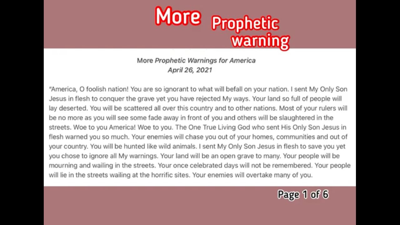 More prophetic warnings! America, seek The True Living God