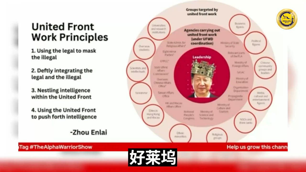 Ava向观众们展示了中共的“统战部”的架构图,详细解释了其组织的渗透的社会人员的类型和工作方式。