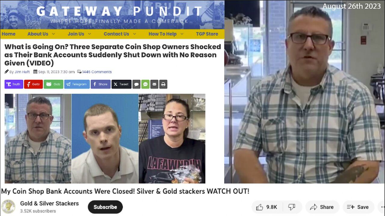 Gold | Three Separate Coin Shop Owners Shocked As Their Bank Accounts Suddenly Shut Down With No Reason Given - Gateway Pundit - September 11th 2023