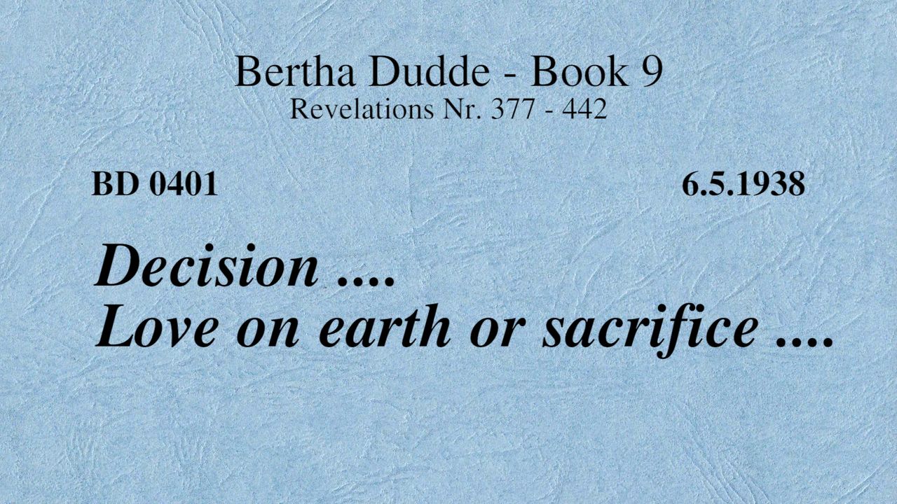 With these words the revelations of God to Bertha Dudde began on June 15, 1937, which found the conclusion on August 17, 1965 with the manifestation 9030 as a seal.