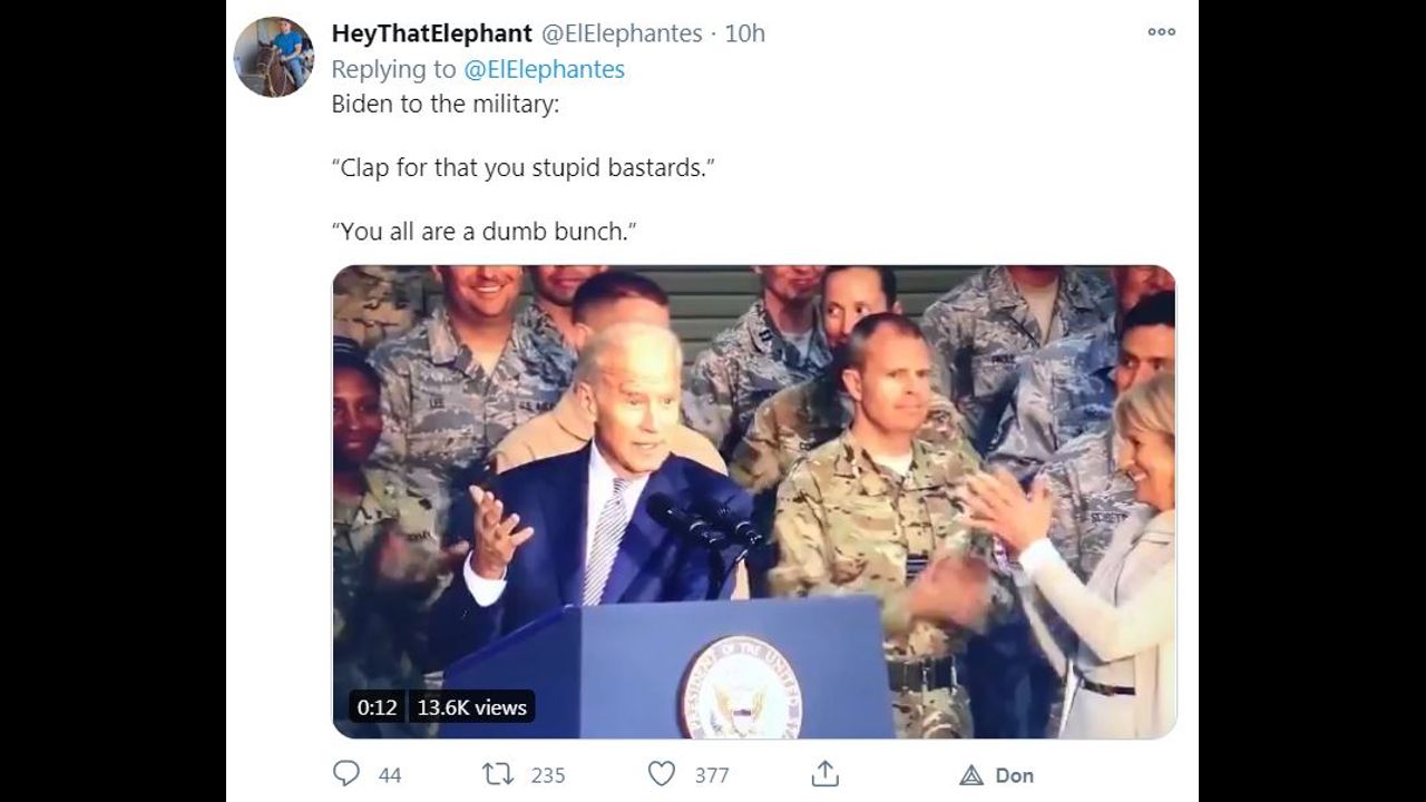 Le 46e président des États-Unis, s'adressant aux soldats :