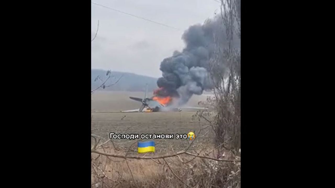 FALLEN UKRAINIAN PLANE - There is no video yet of Downed Russian planes so noisily announced at night. 022622